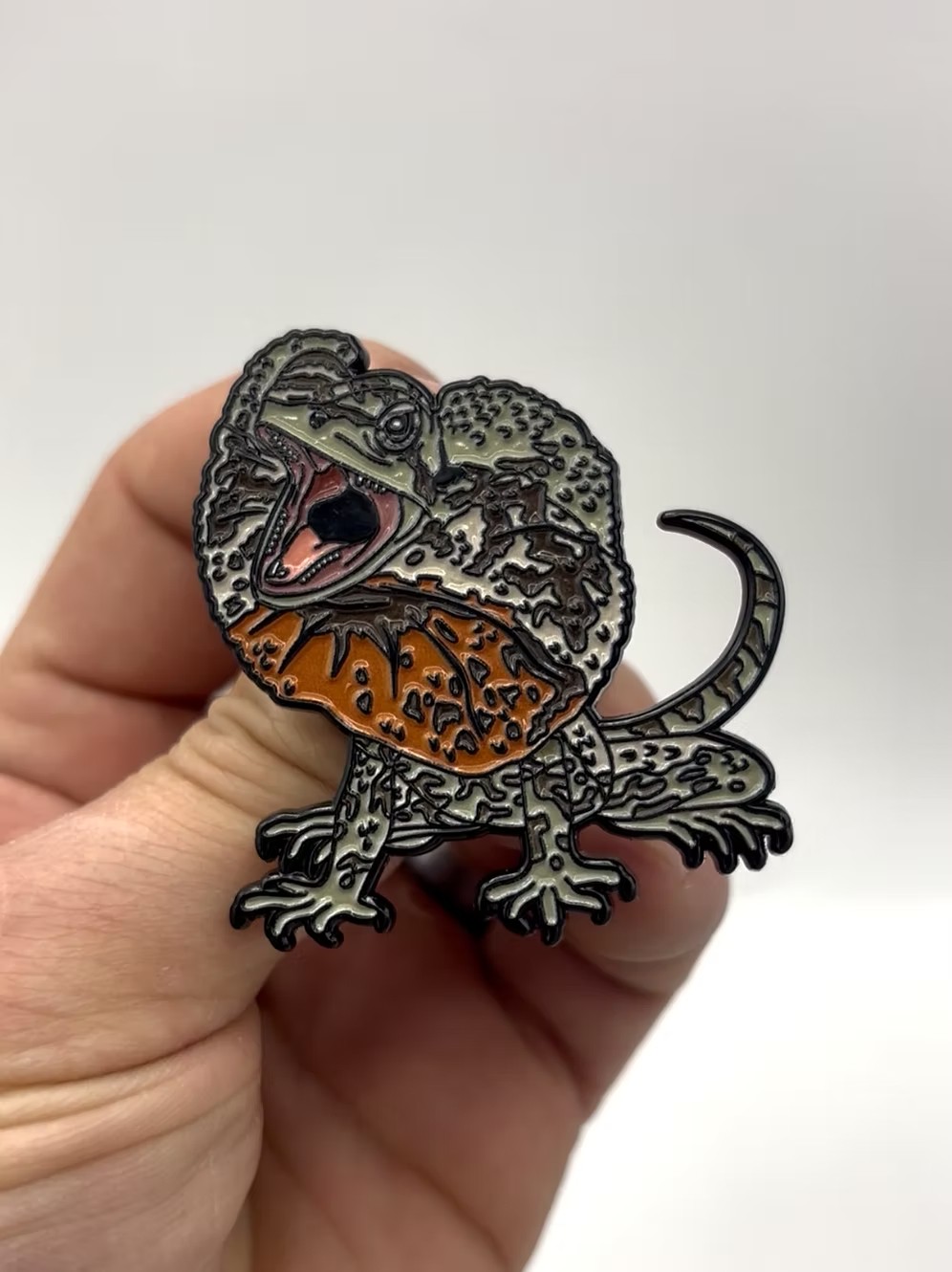 Mr. Frills is a Frilled Dragon! This pin is a medium sized pin that accentuates the Lizard's beautiful frill.