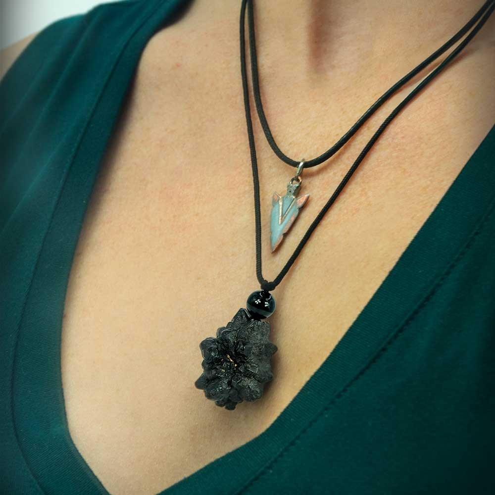 This unique necklace features a natural Egyptian Prophecy Stone, a rare formation prized for its exceptionally high vibration. Often used for grounding higher frequencies into the physical body, this stone supports spiritual transformation and the expansion of consciousness. Its distinct, organic shape makes it a powerful focal point for inner reflection and accessing mystical wisdom. A significant piece for collectors and those seeking profound spiritual alignment. This black cord necklace is adjustable from 13in-26in.